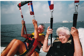 Two years ago, when my Grandma celebrated her 90th birthday, I chose to write a tribute to her. As we remember her life over the next two days, I think it’s only appropriate to honor her here as well. Grandma went parasailing when she was 88. These will forever be my favorite pictures of her.