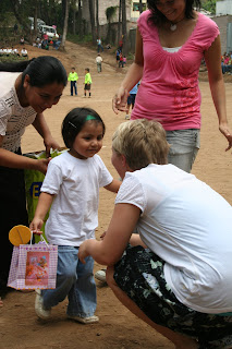 This is the moment that my daughter Erica got to meet her sponsored child, 3-year-old Yesennia. What a sweetheart she is! Yesennia’s mother is on the left and our translator is in the pink shirt on the right.