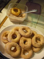 Remove from oil and drop donut in waiting cinnamon-sugar. Coat with cinnamon-sugar.
