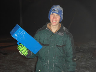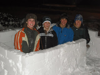 - Build a snow house (see picture). This year we found a snow block maker and the boys have had a blast with it. But a variety of Tupperware sizes and shapes will work fine, too!