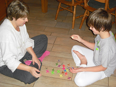 Tonight we carried on the simple theme. I taught Austin how to play jacks. No technology necessary. No electricity needed. Just a bouncing ball and a handful of jacks. We laughed and had a great time.